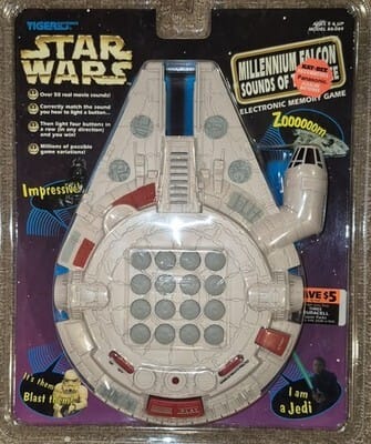 When I was a kid, my family had a matching game that was shaped like the Millennium Falcon from Star Wars. You press a button and it plays one of the many iconic sounds from Star Wars, then you try to find the duplicate of the sound on the board.